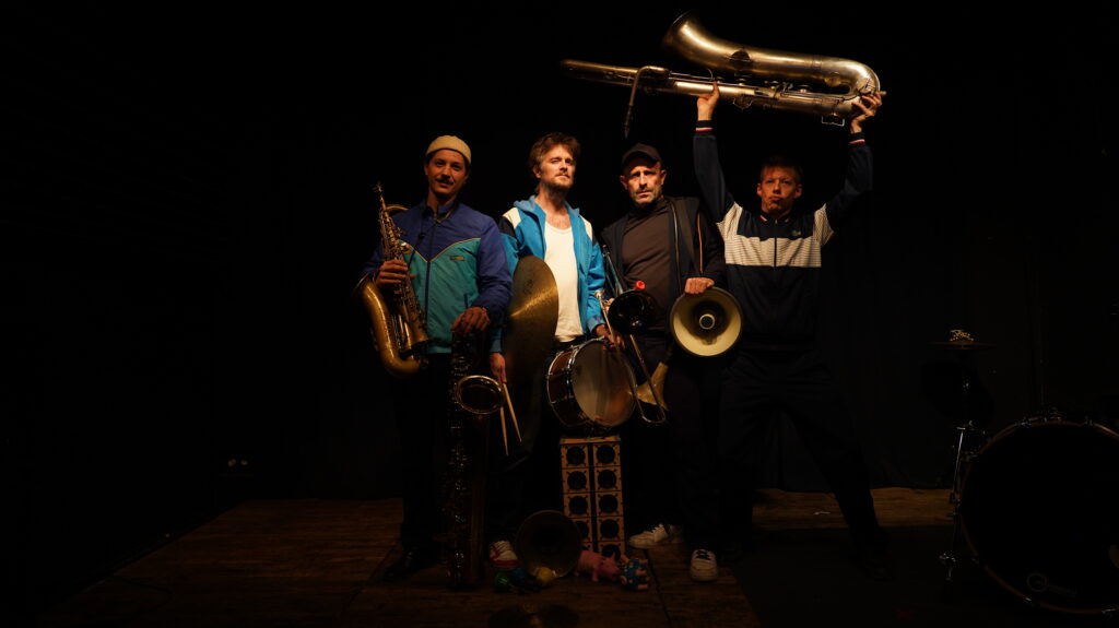 Tout est là, sans écailles, mis à vue, saxophones, tuyau sonore, batterie, cochons, pouet pouet, mégaphone, trombone… Un paysage sensible, singulier et inattendu. Murène c’est un désir de traverser dans un souffle commun une poésie musicale qui cherche à vous toucher, un saut dans l’inconnu, une histoire à inventer ensemble. Sur des compositions originales, Murène apprivoise l’instant dans une fusion de sons à vivre, une suspension temporelle.